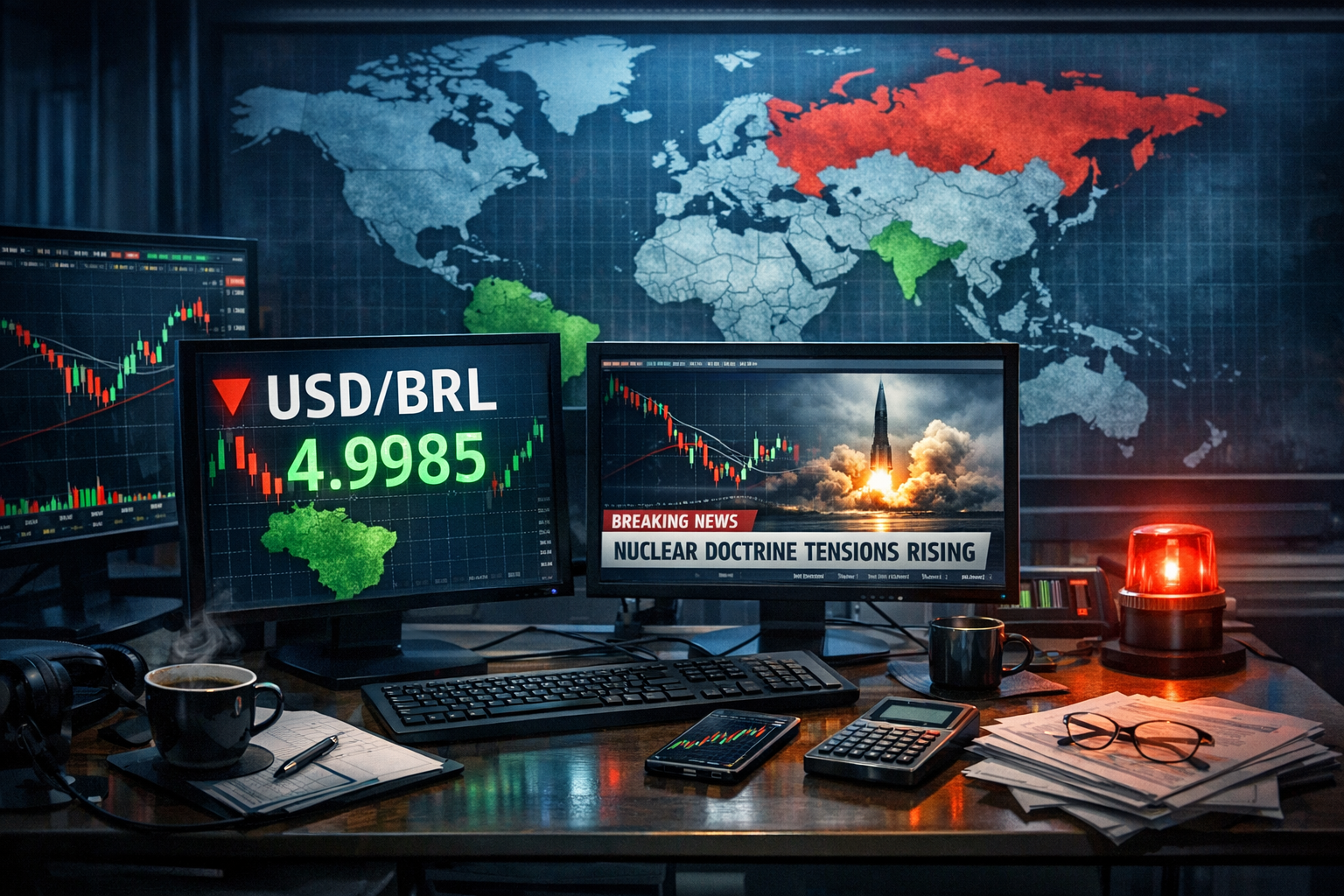Com o pregão ainda em andamento, o dólar segue sensível a novas manchetes sobre a Rússia e à reação de outros países à atualização da doutrina nuclear. Se surgirem novos desdobramentos, a moeda americana pode ampliar a alta ou devolver parte dos ganhos.
