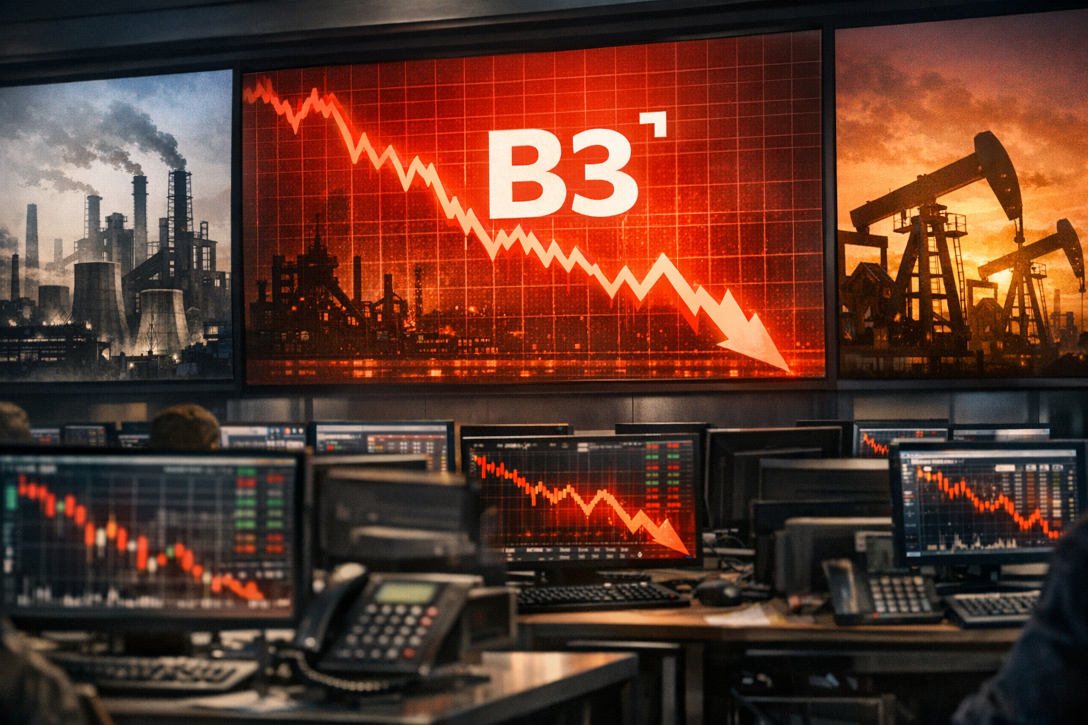 Painel da bolsa brasileira com ações da B3, Ibovespa e reação do mercado aos principais fatores do dia