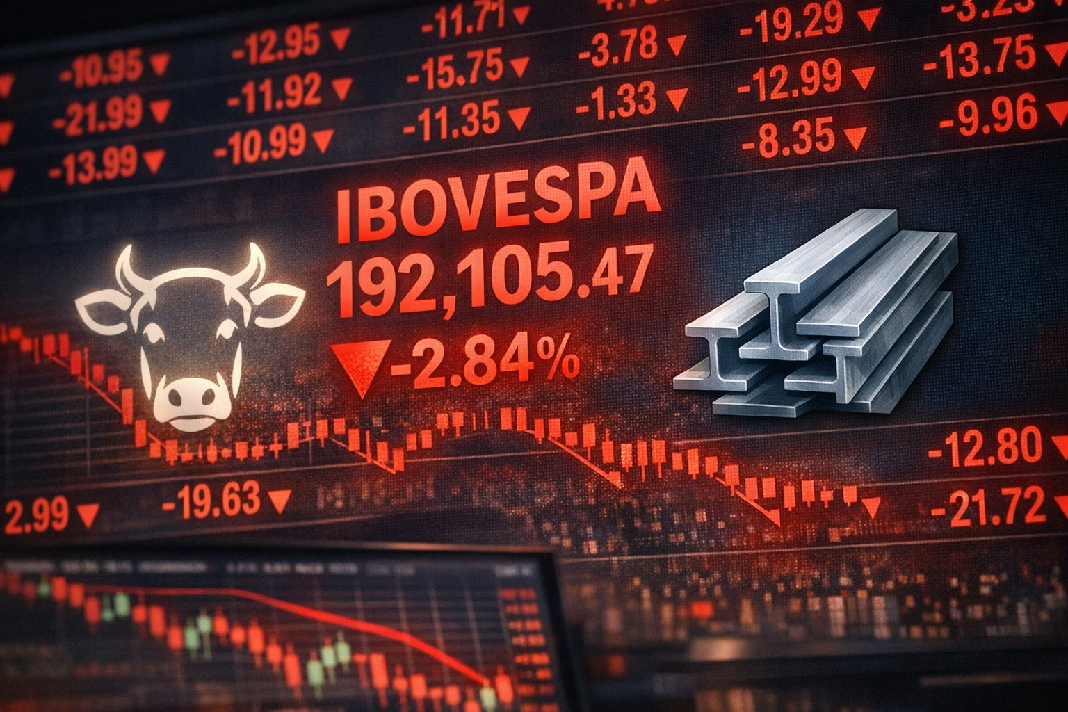 Com o Ibovespa em 192.107,70 pontos, abaixo do fechamento anterior de 192.888,95, o movimento tambem reflete realizacao de lucros e ajuste de posicoes, especialmente em acoes ligadas aos segmentos de proteina animal e siderurgia.